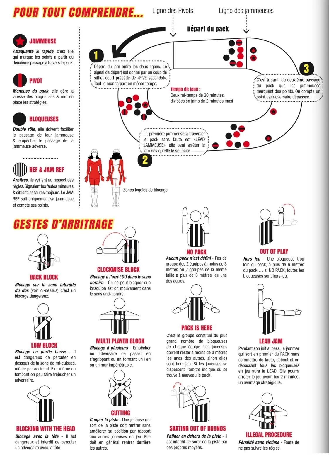 Pour entraver le jammer de l'équipe adverse, les joueuses peuvent la bloquer à l'aide des parties du corps au- dessus de la mi-cuisse, à l'exclusion des avant-bras, des coudes, des mains et de la tête.